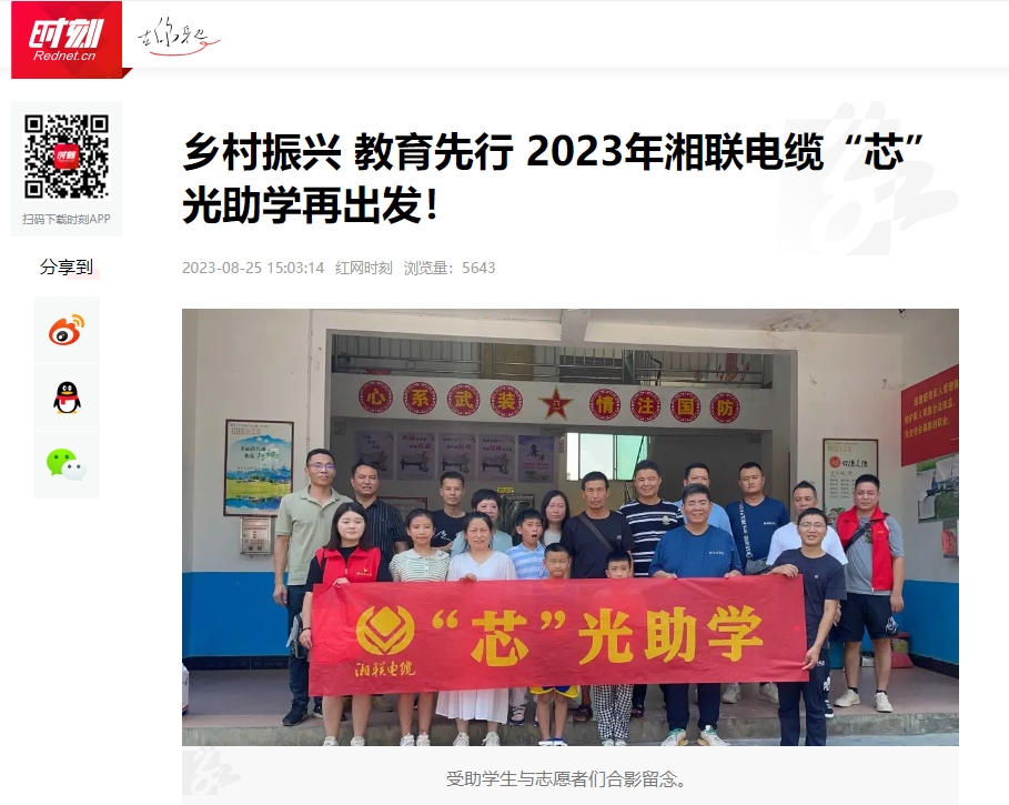 2023年,為增強員工的思想道德建設(shè),湘聯(lián)電纜有序開展公益助學(xué)、懷念袁隆平院士、關(guān)愛老人等活動,多次被瀟湘晨報、湖北新聞、紅網(wǎng)、澎湃新聞等知名媒體推薦報道。