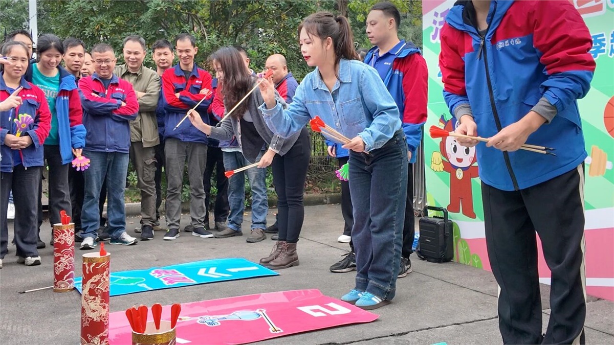 個人項目環(huán)節(jié)同樣精彩紛呈?!?21請回答”猜歌游戲中,每當(dāng)旋律響起,參賽者們便凝神細(xì)聽,快速反應(yīng),搶占答題擂臺,現(xiàn)場熱鬧非凡;投壺項目中,大家全神貫注,盡顯專注與沉穩(wěn),感受傳統(tǒng)運(yùn)動的魅力;“公雞下蛋”項目更是引得全場笑聲不斷,成為當(dāng)天最受歡迎的項目之一。