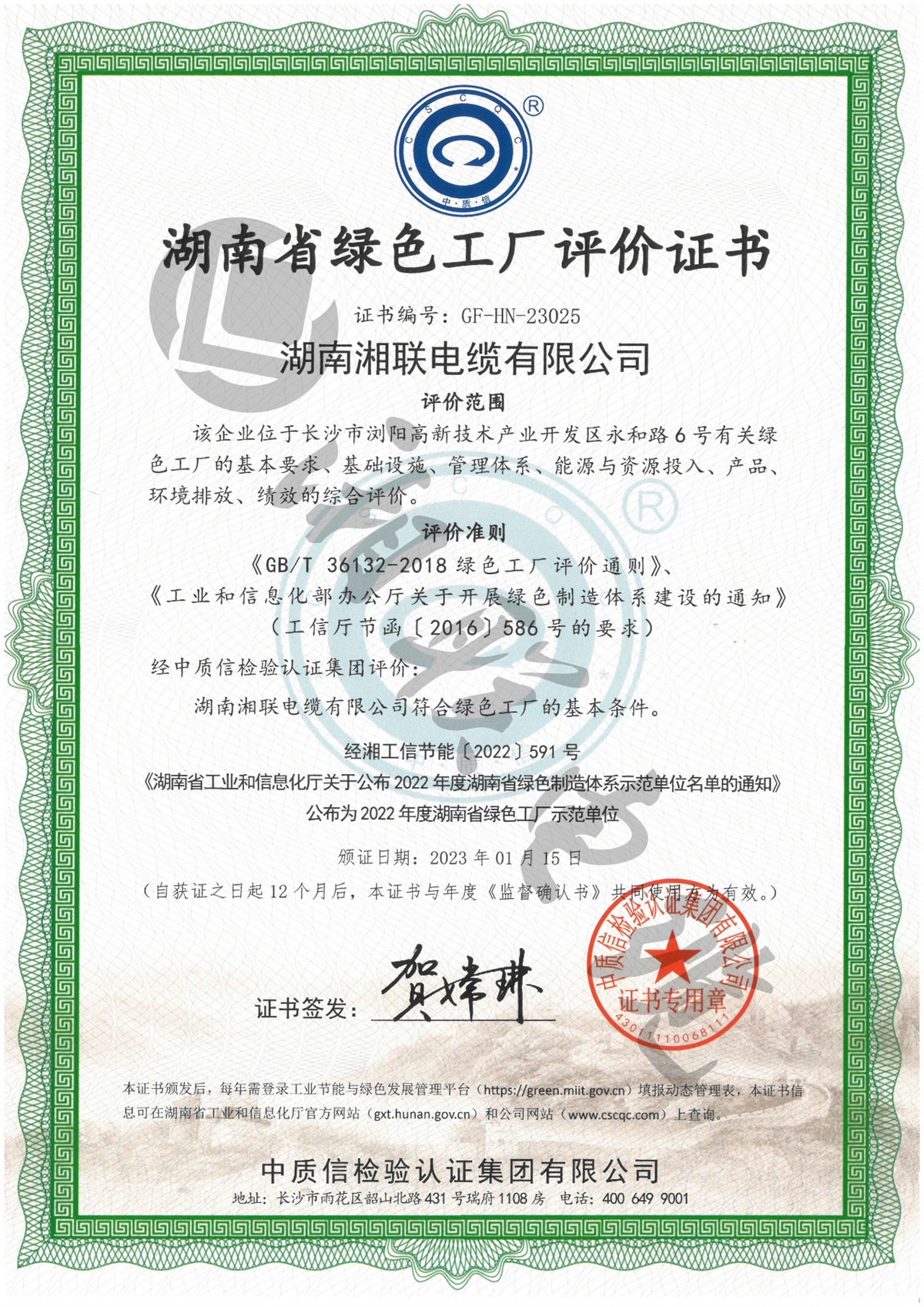 1月,湖南省工信廳公示了2023年湖南省綠色制造體系示范單位名單,湘聯(lián)電纜憑借綠色完善的體制機制獲評湖南省省級“綠色工廠”稱號。